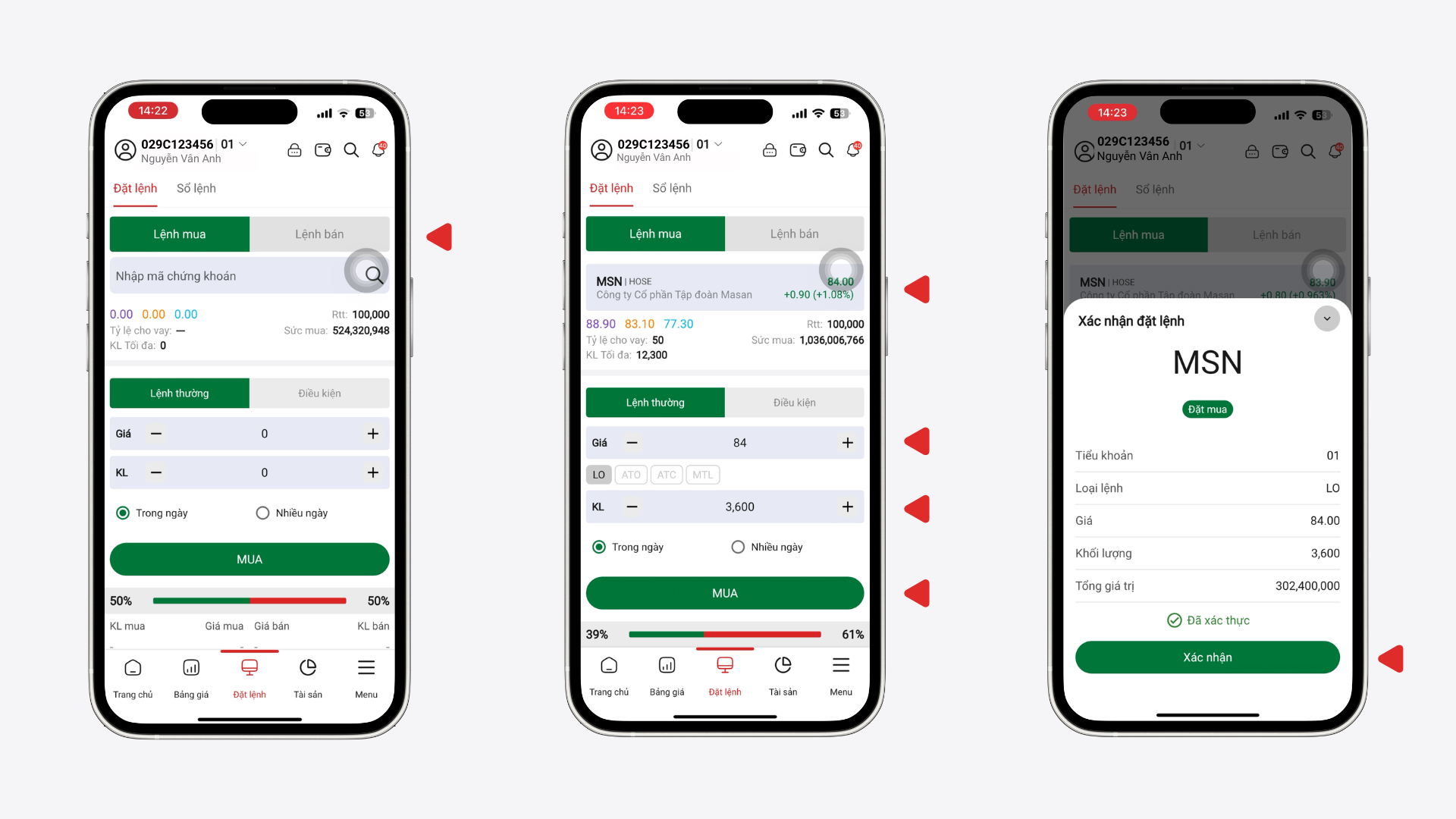 Chọn Xác nhận để hoàn tất đặt lệnh