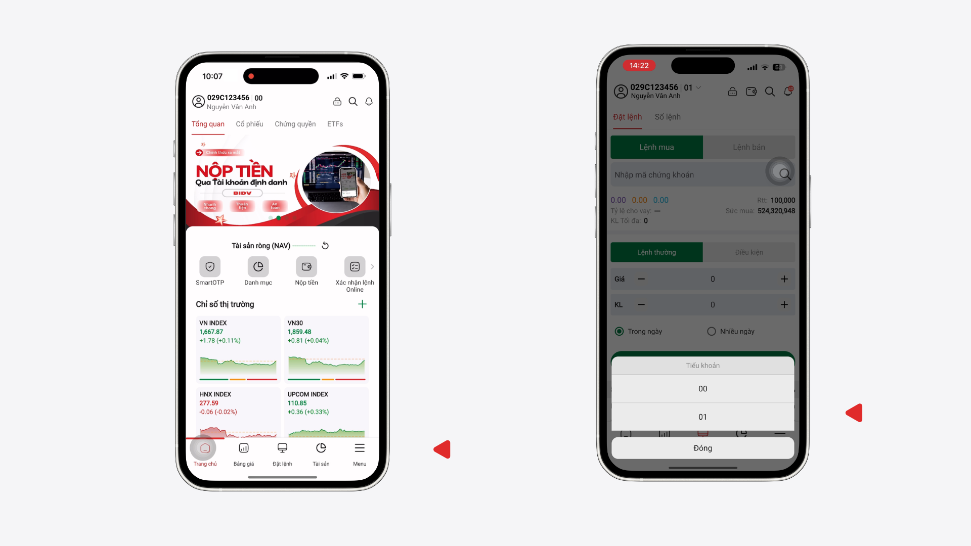 3. Chọn Tiểu khoản mà Quý khách muốn sử dụng