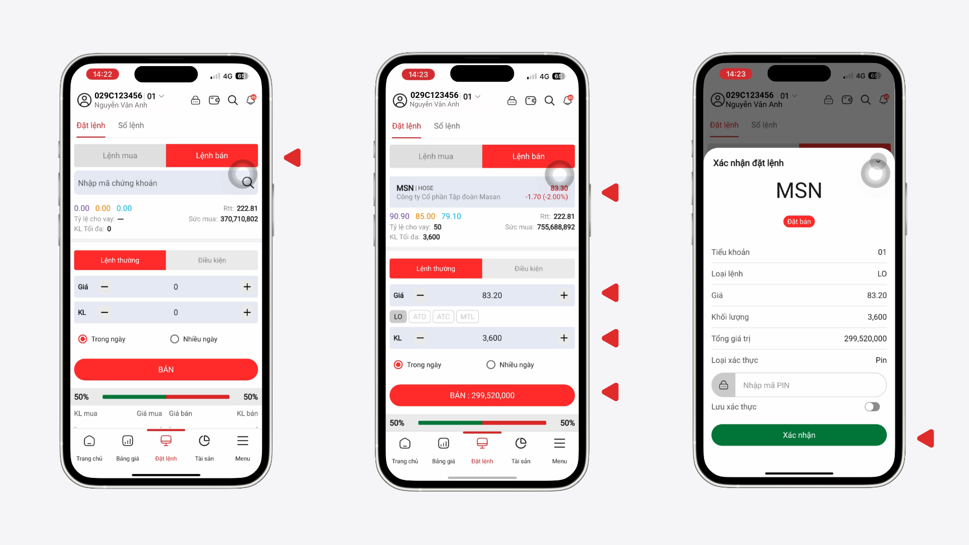 Chọn Xác nhận để hoàn tất đặt lệnh