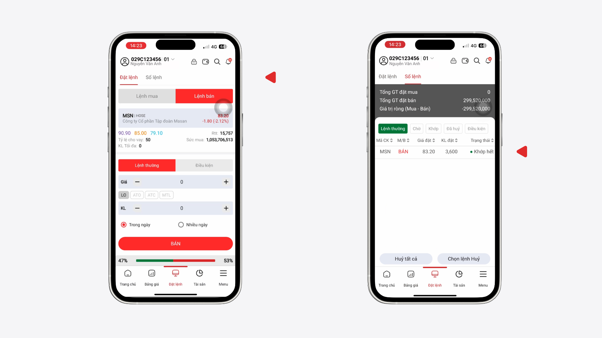 5. Sau khi đặt lệnh thành công, vào mục Sổ lệnh để kiểm tra trạng thái lệnh bán