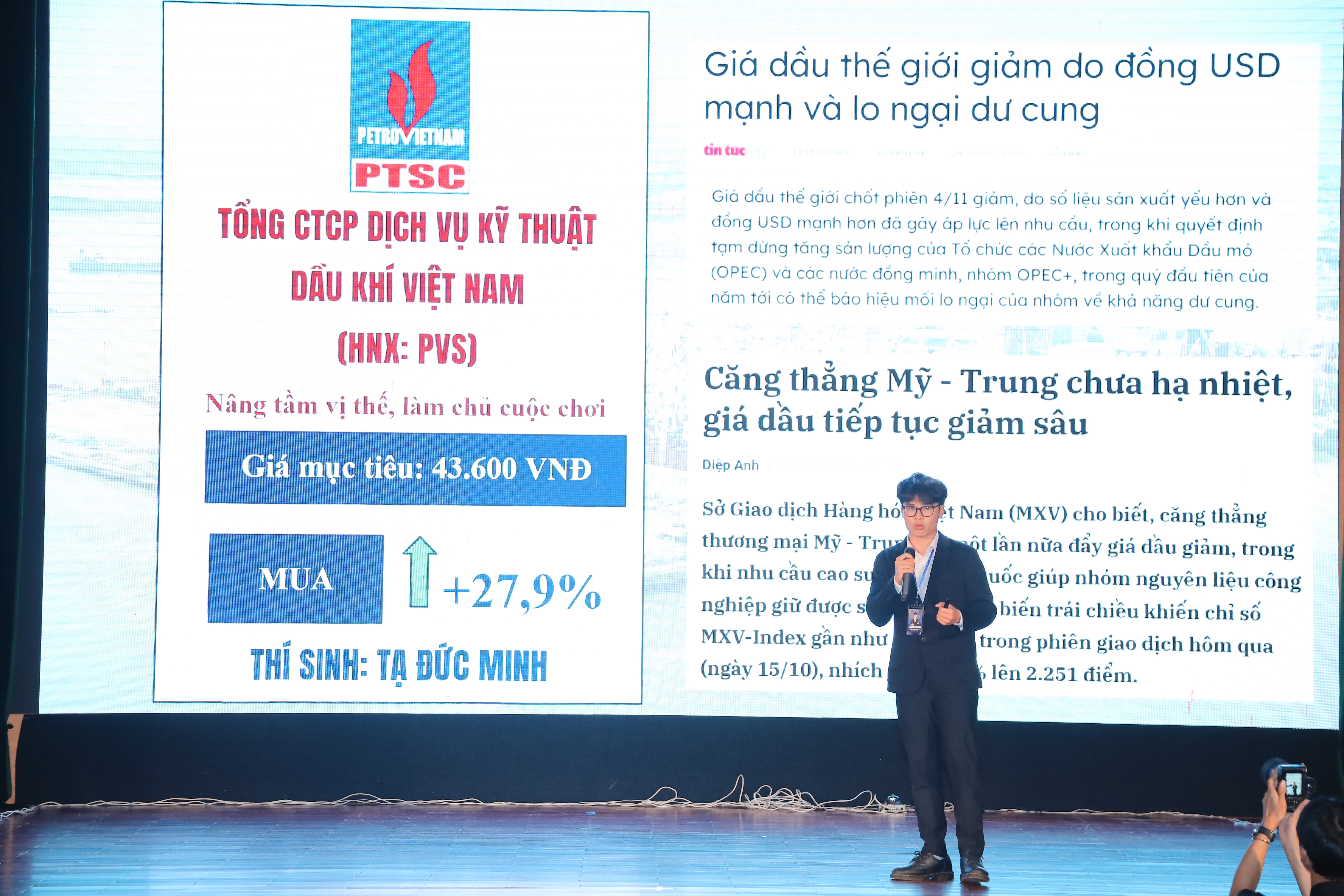 Ngôi vị Quán quân STOCKWISE 2025 thuộc về Tạ Đức Minh, người đã chinh phục Hội đồng Giám khảo bằng bài trình bày súc tích, logic và sắc bén về cổ phiếu PVS. Minh thể hiện tư duy đầu tư trưởng thành khi phân tích cơ hội tăng trưởng dựa trên backlog dầu khí lớn, động lực dài hạn từ điện gió ngoài khơi và lợi thế cạnh tranh của hệ sinh thái dịch vụ đồng bộ. Chiến thắng này ghi dấu sự nỗ lực bền bỉ và bản lĩnh của một nhà đầu tư trẻ đầy triển vọng.