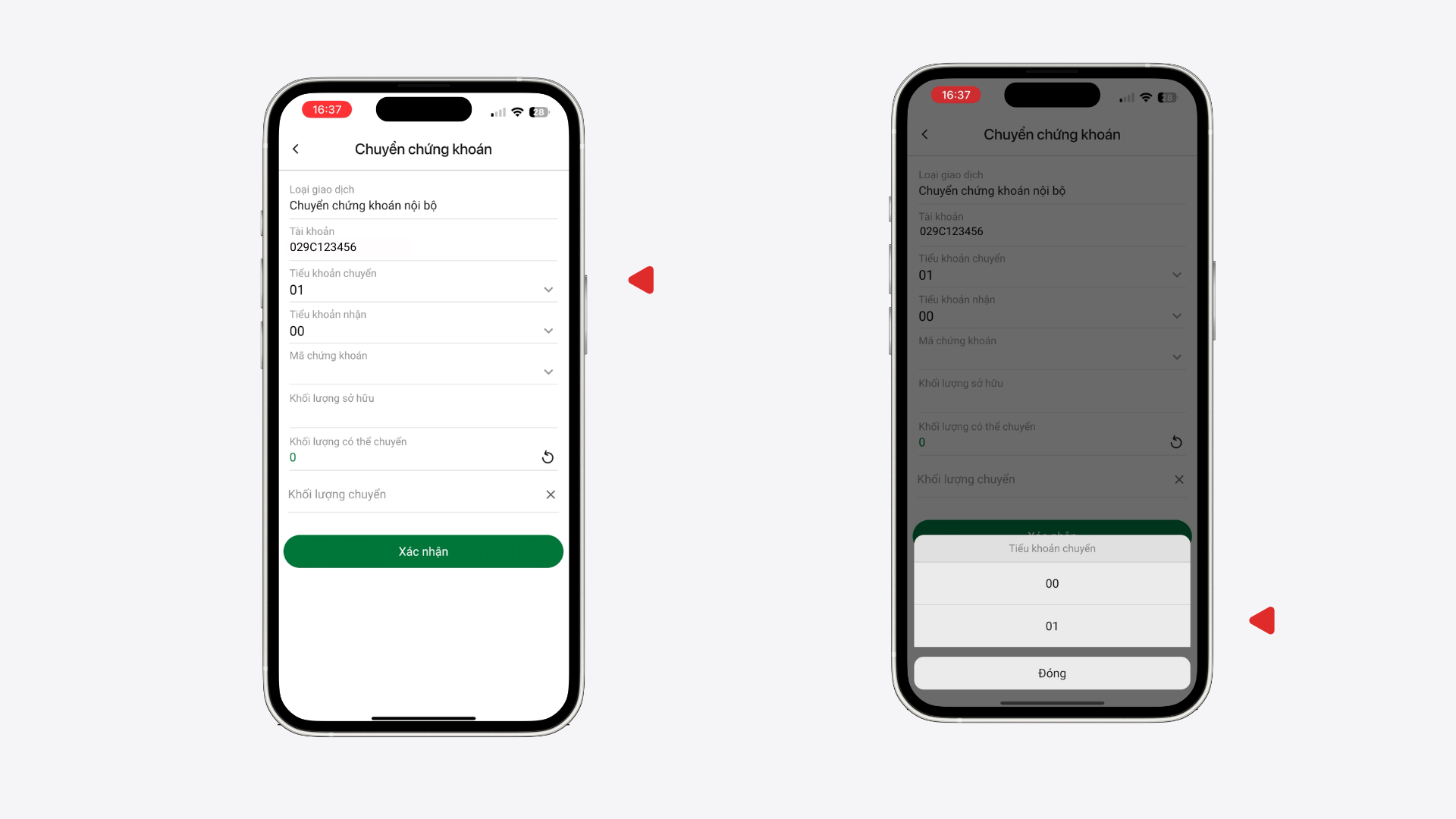 3. Chọn Tiểu khoản chuyển mà Quý khách muốn thực hiện giao dịch