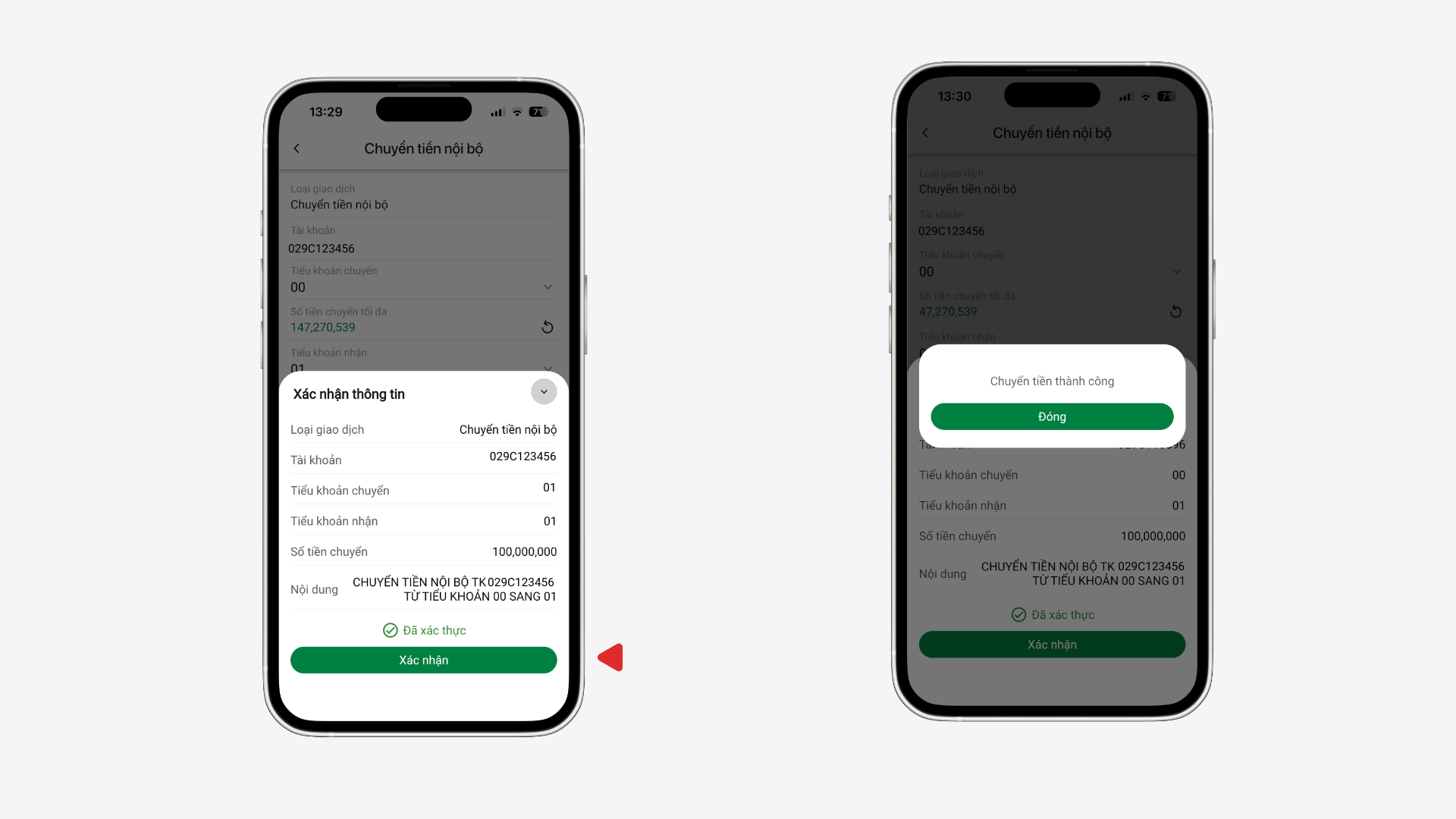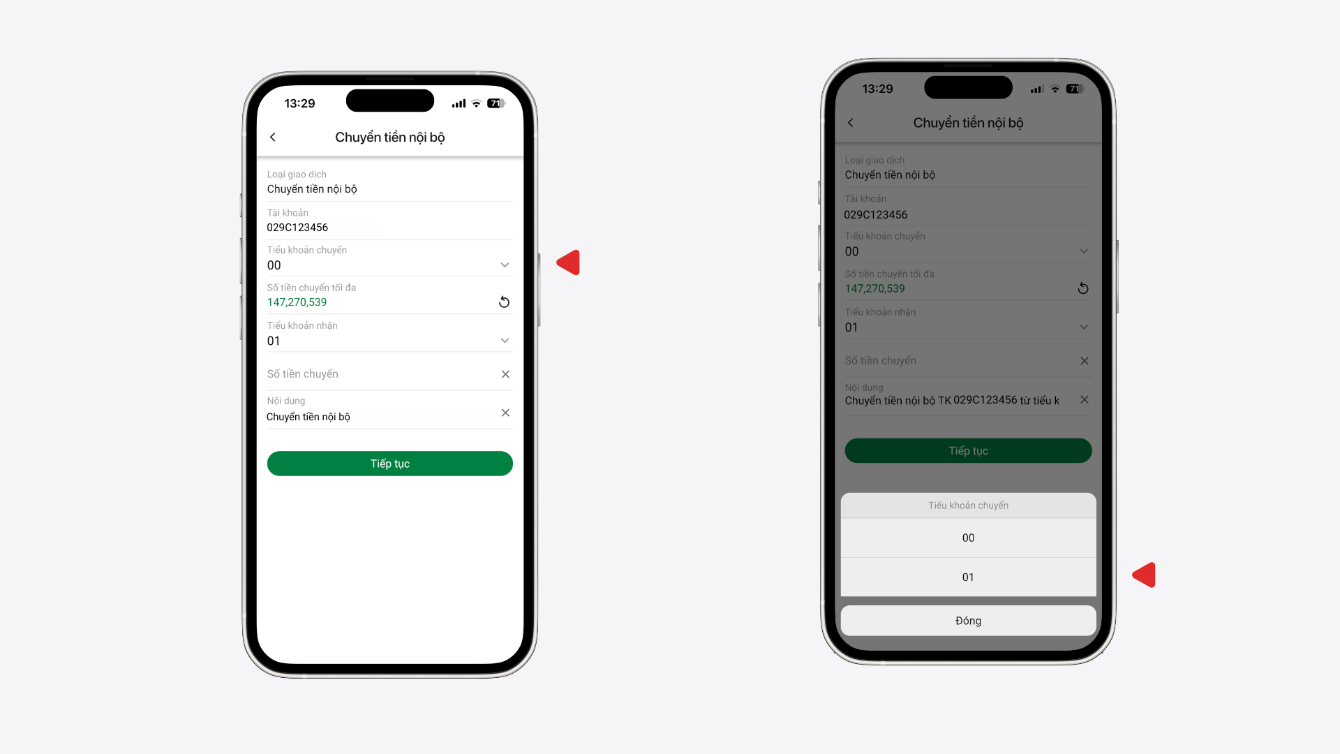 3. Tại mục Chuyển tiền nội bộ, chọn Tiểu khoản chuyển