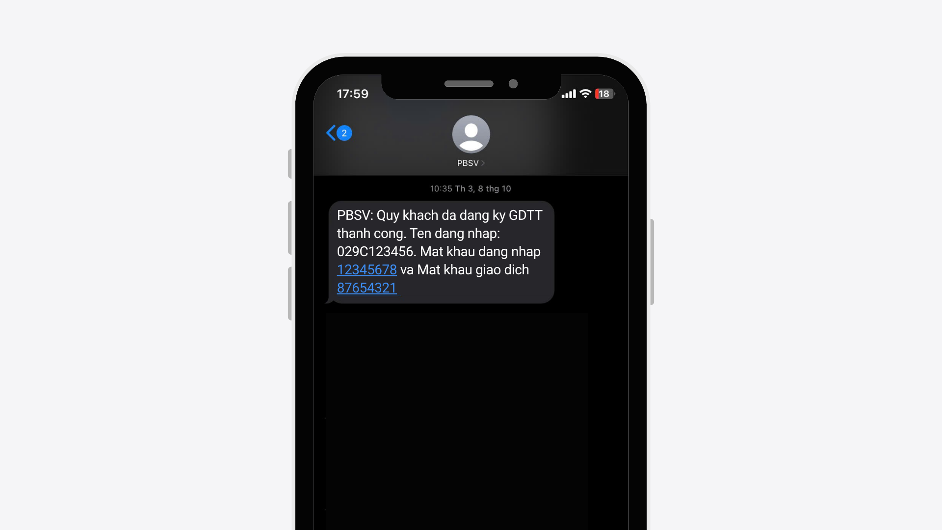 - Quý khách sẽ nhận được tin nhắn SMS với số tài khoản PBSV và mật khẩu đăng nhập