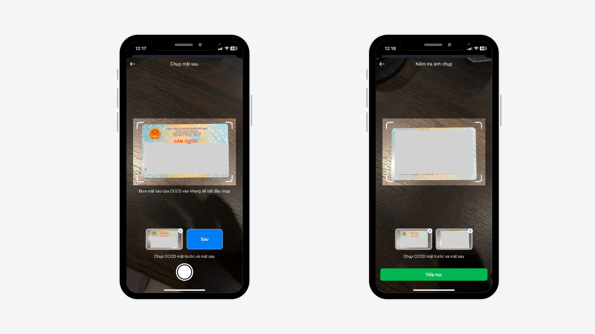 - Chụp ảnh mặt trước và mặt sau của CCCD