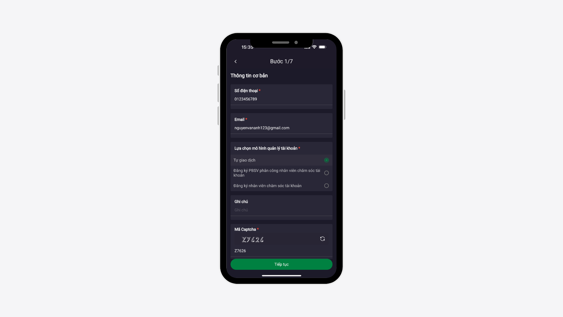 - Nhập Mã Captcha và chọn Tiếp tục
