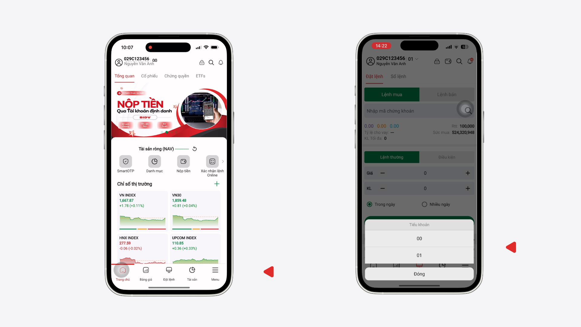 3. Chọn Tiểu khoản mà Quý khách muốn sử dụng