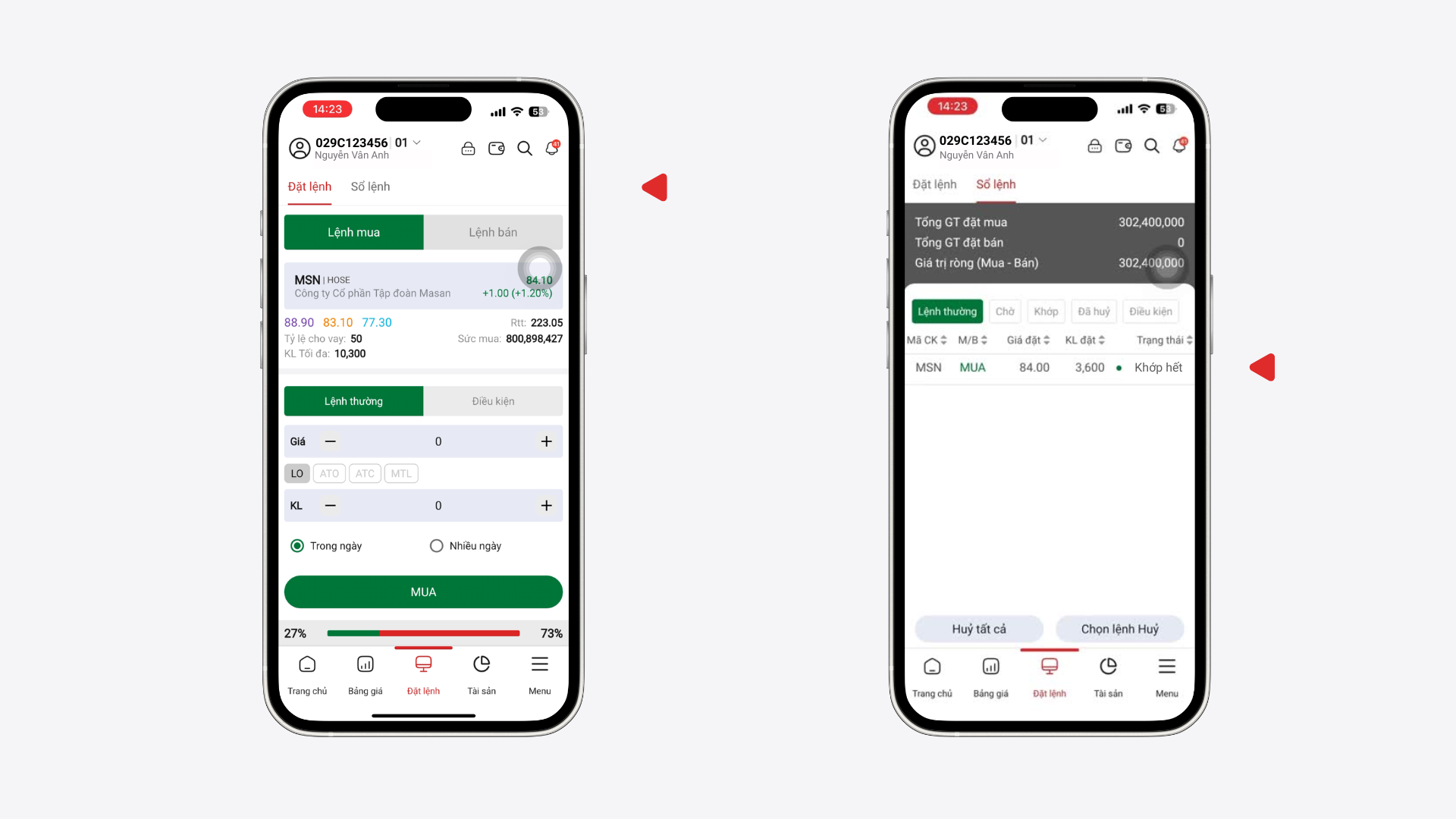 5. Sau khi đặt lệnh thành công, vào mục Sổ lệnh để kiểm tra trạng thái lệnh mua