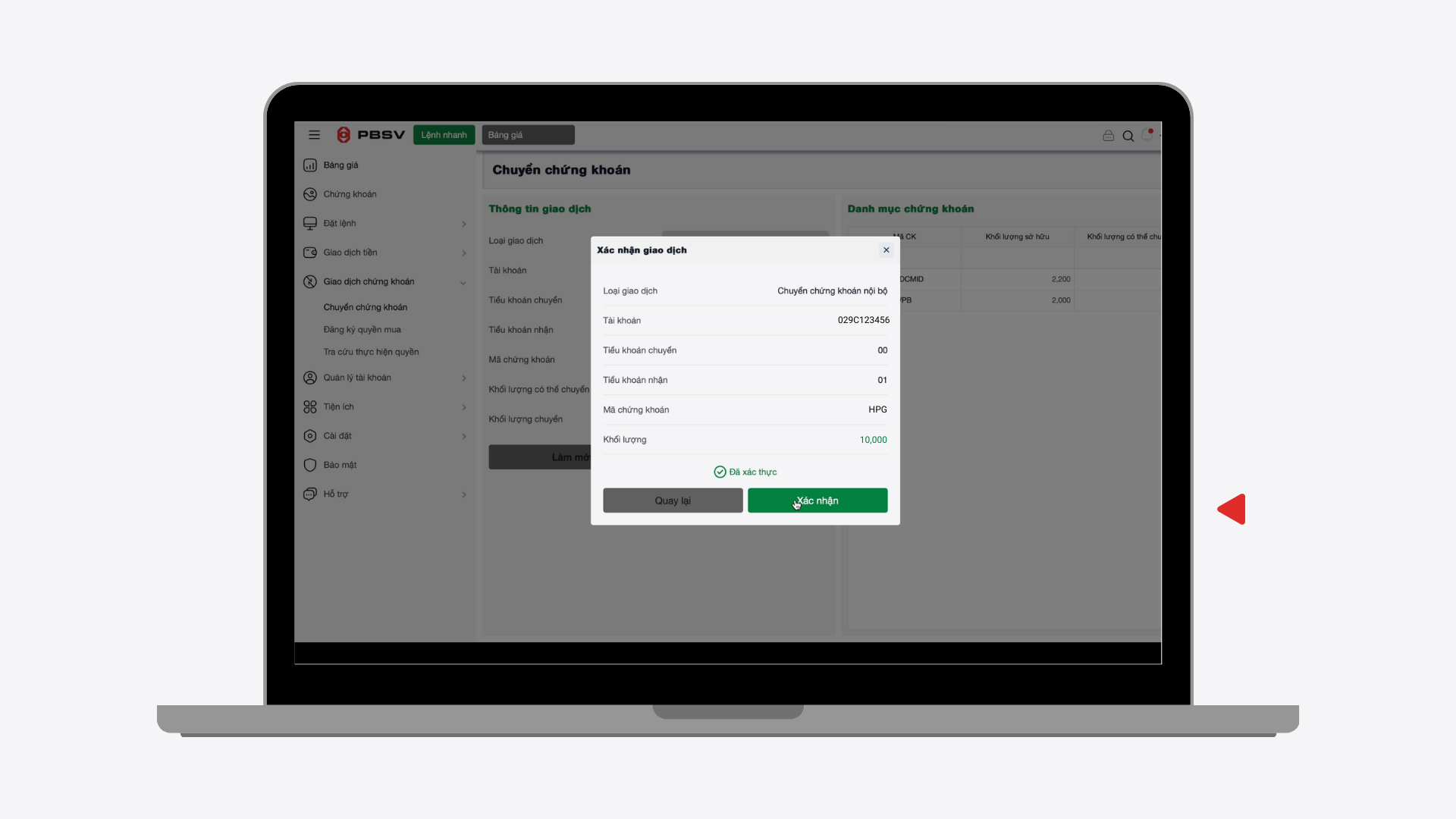 Như vậy, Quý khách đã chuyển chứng khoán thành công trên PBSV Web Trading